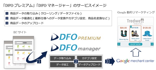ECサイトの集客拡大を支援するコマースリンク株式会社(本社:東京都大田区 代表取締役社長:春木博)は、外部の集客チャネルを利用する際に必要な商品データの作成・登録を自動化するデータフィードサービス「DFO」を機能拡張し、Googleの提供する「Google動的リマーケティング(Google Dynamic Remarketing)」へ本日より対応しました。