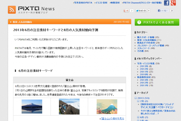 2013年6月の注目素材キーワードと8月の人気素材動向予測を発表