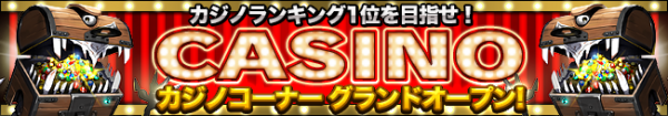 カジノコーナーのグランドオープンを記念して、お得なメダル交換モンスターを全員にプレゼント!