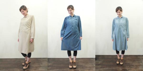 マタニティワンピース 全3色(ベージュ、パウダーブルー、ブルー)フリーサイズ