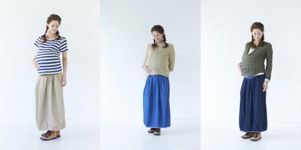マタニティスカート 全3色(ベージュ、ブルーデニム、インディゴブルー)2サイズ展開