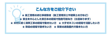 ・東北を中心とした東日本の現場で勤務可能な方(住居有)