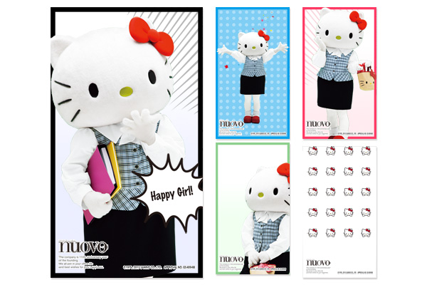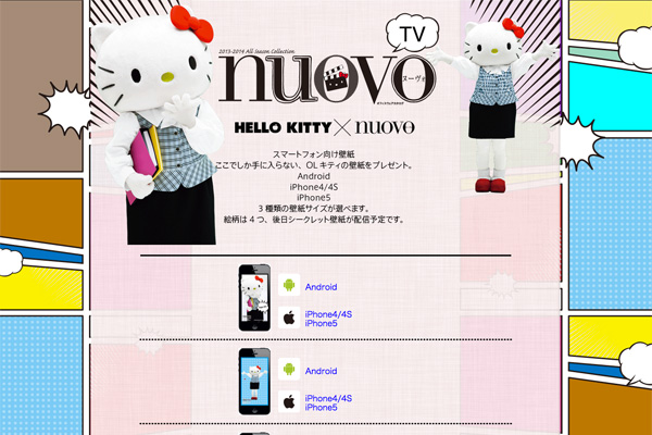 特集ページでは、nuovoのメインターゲットに強く支持されている『ハローキティ』が、実際に販売をしている事務服を着たOLとなり、制服の便利さや必要性を代弁するというコンセプトです。
