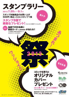 コミックのお買い上げに対して、「聖☆おにいさん」「七つの大罪」(ともに講談社)、「銀の匙 Silver Spoon」「神のみぞ知るセカイ」(ともに小学館)の4種のオリジナルコミックカバーをプレゼント。