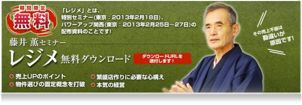 レジメプレゼント中。 ダウンロード申込は こちら