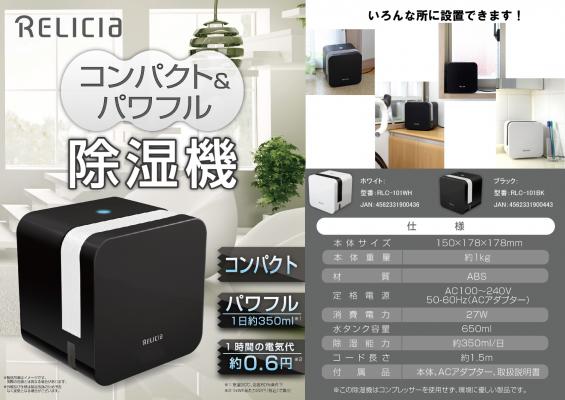 株式会社TOHOはRELICIAブランドのコンパクト除湿機を6月下旬から通販で発売しました。参考売価は6980円です。