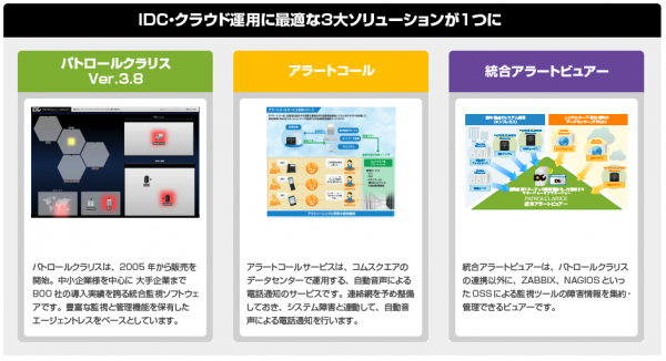 株式会社コムスクエア(東京都中央区、代表取締役社長:上嶌 靖 以下コムスクエア)は、統合ソリューションの監視ソフトウェアライセンス、自動音声通知、OSSの障害統合の3つを1つのパッケージとした「パトロールクラリス簡易運用支援パッケージ」を本日より発売開始を致しました。