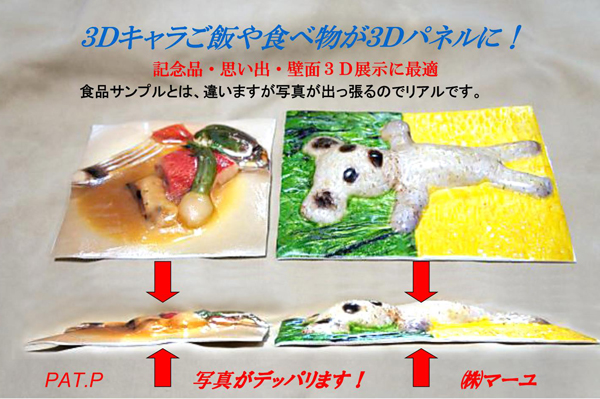 食品サンプルの様な作りや精密な物ではなく、写真の一部分が凹凸になります。