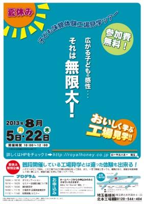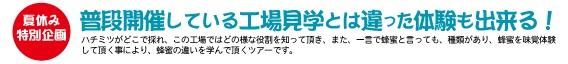 毎年『夏休み子供サイエンスアカデミー』を開催している埼玉養蜂株式会社では、今年は味覚体験をテーマとした体験型工場見学を下記プログラムで実施致します。