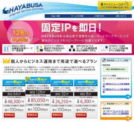 固定IPアドレスISP https://www.hayabusa.ne.jp/