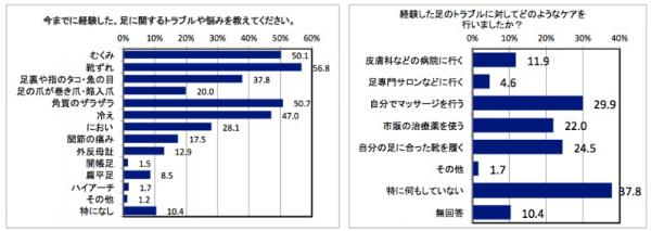 そうした足のトラブルに対してどのような解決方法をとっているのでしょうか?一番多かった回答は「特に何もしていない」(37.8%)となり、トラブルをどのようにケアして良いのか分からなかったり、つい放置してしまう女性も多いのでは?ということが予想されます。