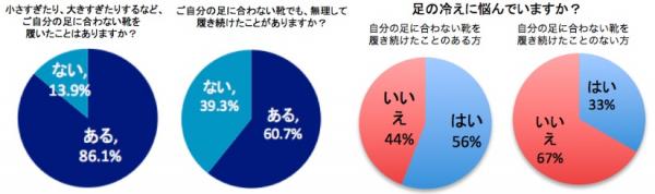 一概には言えませんが、足に合わない靴を履き続けたことのある女性ほど、冷えに悩んでいる方が多い傾向にあることが見て取れます。