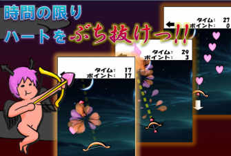 このゲームの目的は、1ラウンドごとに左右からバラバラに出てくるハートを1本の矢で綺麗に射抜いて高得点を取ることです。