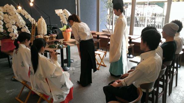 珈琲専門店として待望の【HEAVEN'S CAFE】2号店が西中島南方にオープン!2013年7月22日にスタッフや「天地雅楽」の神職・巫女などのメンバーが集まり「開店清祓神事」が斎行されオープンした。