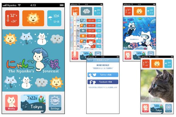 ・天気の画像付きでTwitterやFaceBookに投稿が可能