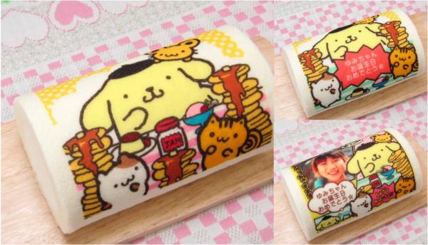 2013年サンリオキャラクター大賞にて、「TOP3に入ったら、ポムポムプリンのプリンを発売します」と宣言していたポムポムプリン。見事3位に入ったため、ロールケーキも新発売致しました。お好きなメッセージやお手持ちの写真をロールケーキにプリントすることができ、誕生日にぴったりのロールケーキです。