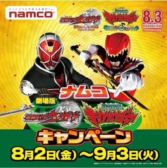 株式会社ナムコ(本社:東京都大田区)は、2013年8月3(土)より全国の映画館で公開される「劇場版 仮面ライダーウィザード イン マジックランド / 劇場版 獣電戦隊キョウリュウジャー ガブリンチョ・オブ・ミュージック」の公開を記念し、タイアップキャンペーン「ナムコ 劇場版 仮面ライダーウィザード 獣電戦隊キョウリュウジャー キャンペーン」を、2013年8月2日(金)から9月3日(火)まで、全国のナムコ直営アミューズメント施設約200店舗で開催します。