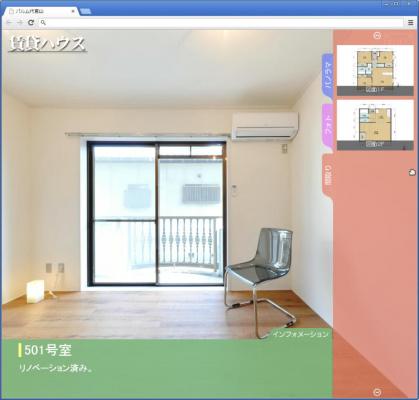 賃貸・不動産業界の多くのWEBサイトでは、スチール写真や、間取り図での物件紹介が主流となっています。新しい360度パノラマVRを活用した物件紹介においても、パノラマVRに併せて、従来のスチール写真や間取り図が掲載できることで、物件紹介を、より情報豊かに見せることが可能となりました。