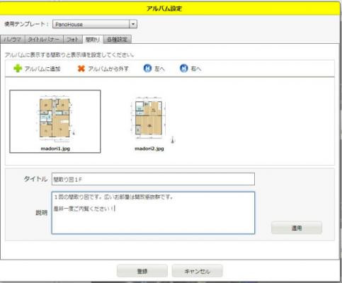 1.パノラマ+写真+間取り図+情報テキスト+物件タイトル画像を、物件単位で設定可能