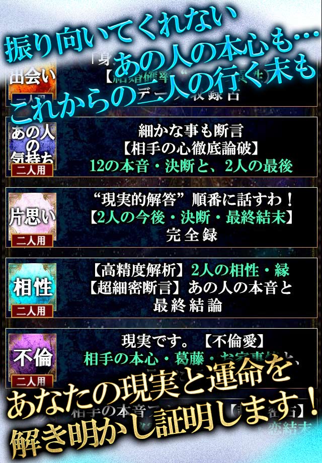 ・相手の本音フル暴露!【超精密占】勘違い・秘密・愛情レベル・恋結末