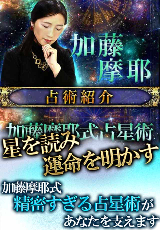 “迷える人々”に寄り添うべく対面鑑定を続けるかたわら、全国各地でのイベントにも出演。2002年、膨大な研究成果を引っ提げて渡英。伝統的西洋占星術と自身の理論とをすり合わせ、【加藤摩耶式占星術】を確立した。イギリスと日本を行き来しながら、世界各地の占術の「比較・融合を繰り返す」というスタイルで、独自の研究を続けている。現在、『占い師の部屋』(テレシスネットワーク株式会社が提供するサービス)に出演中。人気の高さゆえ、予約困難な時期も多い。