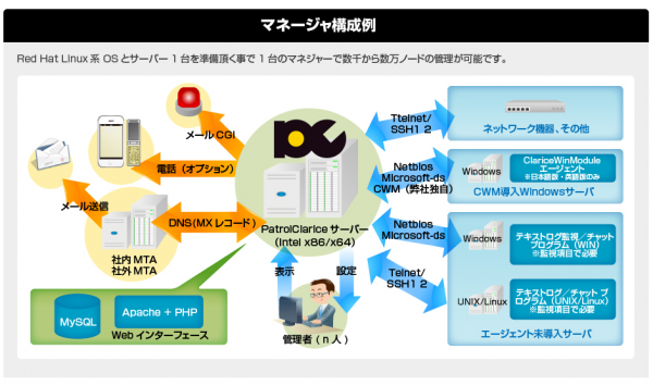 「パトロールクラリス フリー(PATROLCLARICE FREE)」は、機械設備、汎用機の管理端末、サーバー、ネットワーク機器、モバイルデバイスにお役立て頂ける死活監視機能を軸に、御好評を頂いております日本語ウェブインターフェースによる高機能なレポート機能、障害情報を集約するビュアーなど、パトロールクラリスの基本機能を完全無料にて提供し、企業、教育機関、サービス提供者様へ御導入頂ける事を期待しております。