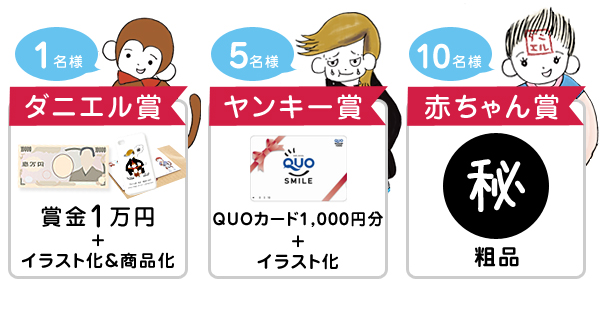 賞金1万円+アイデアをイラストにし商品化させていただきます。