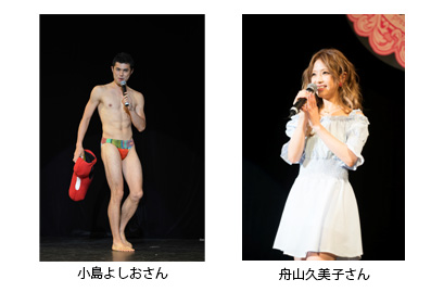 おなじみの海パン姿で現れた小島さんは、自身が手がけた著書「カロリー関係ねえ!小島よしおのダイエット検定」をアピールすると同時に著書に掲載している“あずき体操”をレクチャーし、会場を盛り上げました。