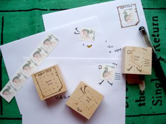 絵封筒とは、切手の絵柄に合わせて封筒にイラストを描くクラフトです。1枚に絵のように仕上げるものもありますが、この切手スタンプは、シンプルに切手(主に現在販売中の80円金手・キジバト)に合うようにデザインされています。
