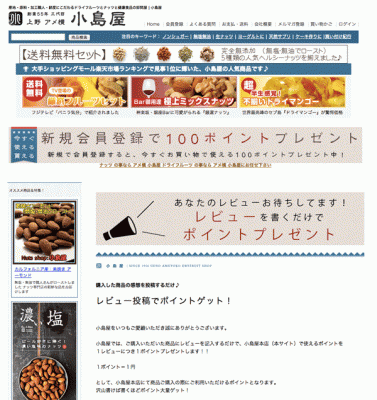 小島屋本店で使用できるポイントを1レビューにつき1ポイントプレゼントします。