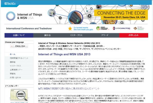 会議:「Internet of Things & Wireless Sensor Networks (WSN) USA 2013-米国モノのインターネットと無線センサーネットワーク会議」