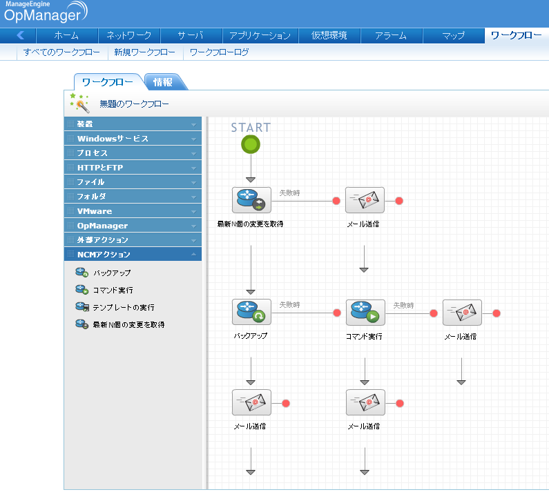 ■NCMプラグイン(ネットワーク機器の変更管理)タスクを自動化するITワークフローのアクションを追加