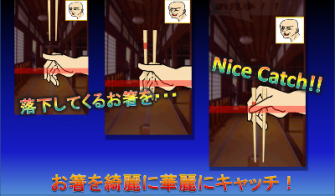 ゲームのルールは簡単で、開始の合図でお箸が落ちてくるので、画面をタップして適切な位置でお箸をキャッチしましょう。