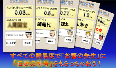 すべての難易度で「お箸の先生」にお箸キャッチマスターの証である「伝説の称号」を認定してもらえるまで果敢に挑み続けましょう!