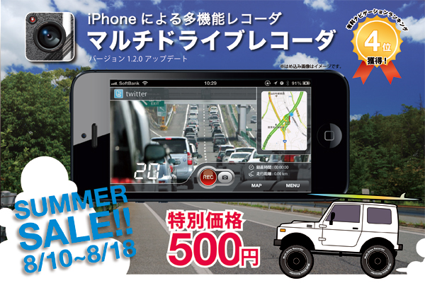 夏休みの期間中(08/10~8/18)の交通事故を防止するため、この期間中、通常価格600円を特別価格500円で本アプリを提供いたします。