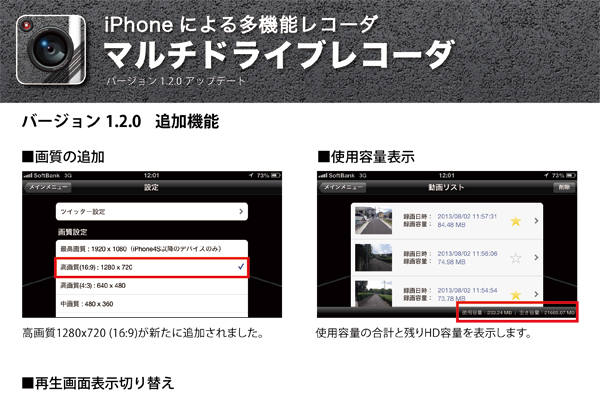 【マルチドライブレコーダ1.2.0バージョンアップ内容】