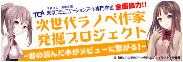 株式会社フェイス・ワンダワークス(本社:東京都港区、代表取締役:石井 貞之、以下 FWW)は、学校法人滋慶学園 東京コミュニケーションアート専門学校(所在地:東京都江戸川区、名誉学校長:奥山 清行、鞍井 修一、以下 TCA)との共同企画「次世代ラノベ作家発掘プロジェクト」(以下 ラノベプロジェクト)を、FWWが運営するクリエイター支援サイト「ポケクリ」にて2013年8月12日(月)から9月11日(水)まで開催します。