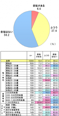 現在の世帯月収で「余裕がない」人は、全体で56.2%と半数を超える結果となりました。