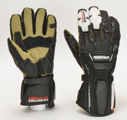 「バイカーズステーション」誌の佐藤編集長。そのこだわりとクシタニのコラボから生まれたテストライダー仕様のグローブです。クシタニの通常モデルは手のひら部分が1.0mm厚の牛革であるのに対して、よりソフトな0.8mmカンガルー革を使用するなど、ハンドルグリップからのインフォメーションを最優先した仕様です。