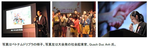 ベトナム版のドリプラ『ベトナム ドリーム・プラン・プレゼンテーション』が、2011年、2012年に在日ベトナム人の若者有志によって開催されました。2012年開催時の優勝者、Quach Duc Anh氏は、当時プレゼンした「ベトナムで社会起業家を育てるソーシャルビジネス学院を建てたい」という夢を叶えて、現在はホーチミンで学校を運営しています。