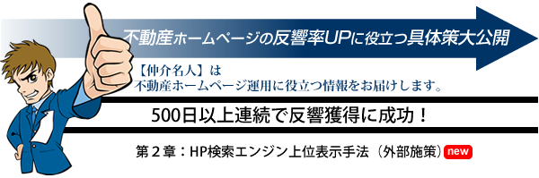株式会社ショーケース・ティービー(本社:東京都港区赤坂 代表取締役CEO:森 雅弘)は不動産専門ASP/クラウドツール【仲介名人】サイトにおいて、不動産ホームページ運用に役立つコンテンツ【500日以上連続で反響獲得に成功!】の第2章:「検索エンジン上位表示手法(外部施策)」を公開しました。