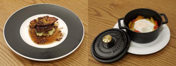 (右)「ダッチオーブン仕立てのラタトゥイユ 温泉玉子のせ」 ¥700
