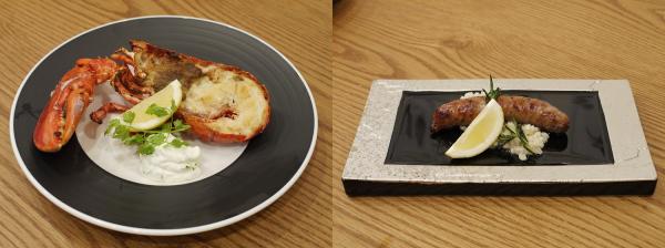(左)「活オマール海老のロティ サワークリーム添え」 ¥1,380