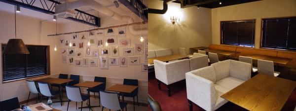 2階はゆったりとスペースをとったテーブル席。モダンカジュアルなインテリアと明るすぎないほどよい照明が居心地のよい空間を作り上げています。