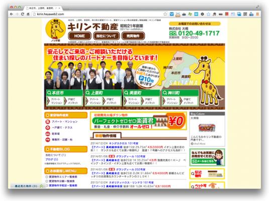 「キリン不動産」様は昭和21年創業、埼玉県の本庄市、上里町、美里町、神川町を熟知した地域密着型の老舗不動産です。「安心して来店・相談しやすい住まい探しのパートナー」をめざし誠心誠意努めることを会社ポリシーとして掲げています。今回、不動産ホームページを開設するにあたり最適なサービスとして【仲介名人】をご採用頂きました。
