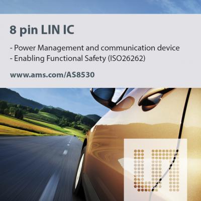 ams(日本法人:amsジャパン株式会社、東京都品川区、カントリーマネージャー 岩本桂一)は本日、機能安全標準規格ISO26262に準拠するLINスレーブアプリケーションをサポートする世界初の小型電源/トランシーバIC、AS8530を発表しました。
