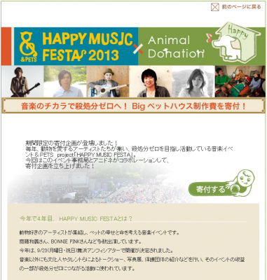 音楽イベントでセットの主役となる巨大な『ペットハウス』(犬小屋)と福島の被災ペットに贈るペットハウス、これらの制作費(約30万円)を寄付で募ります。