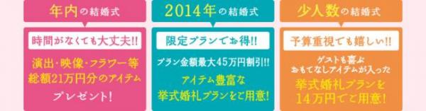 半年以内の結婚式、2014年の結婚式、少人数の結婚式などお2人のご希望は様々です。