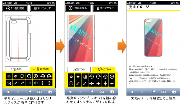 また、皆様からご好評いただいている、自分で自由自在にオリジナルデザインが作成できるKAZARU独自の「デザインツール」は、スマートフォン版サイトでも、使える機能はそのままに、使い勝手を最適化しご提供しています。