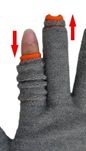 ポリウレタン製で伸縮性に優れた指先部分は、3本の指(親指・人差し指・中指)の出し入れが自由に。
